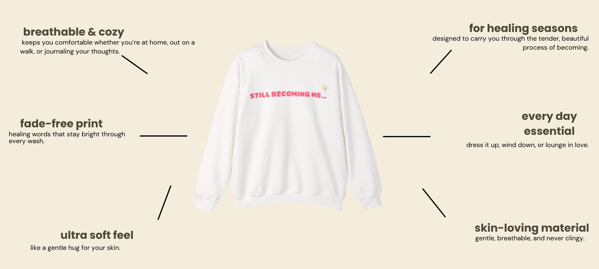 Our crewnecks have become a customer favorite — praised for their softness, meaningful design, and the comfort they bring to every healing season. -